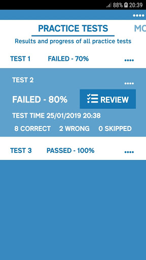 • You can view test progress for both practice tests and the more-stricter mock tests mode to analyse visually how you have improved.