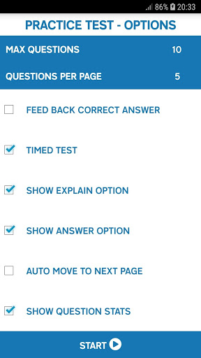 • You can select the type of questions you want to appear in the test from occasionally wrong to wrong everytime and more.