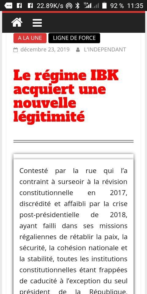 With the latest version of the application, take advantage of the innovations made thanks to your comments to easily navigate to the exclusive and multimedia content prepared by the teams of journalists from LINDEPENDANT-MALI