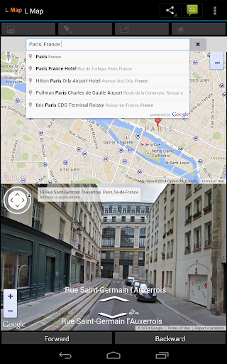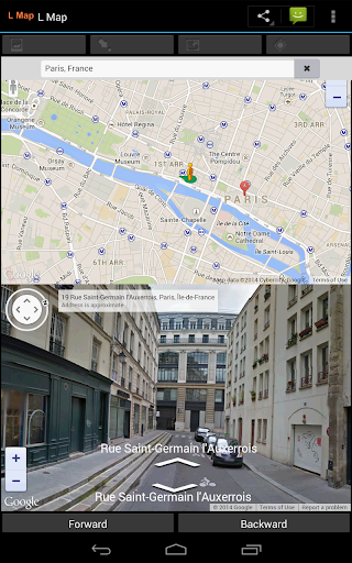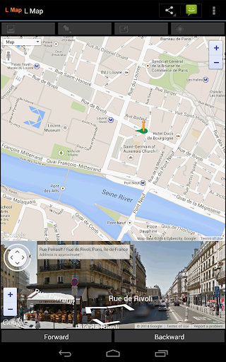 L Map lets your mobile device show maps in a better way by dividing screen into map view and street view. It shows the Pegman facing to the direction on the map and updates together with the street view.