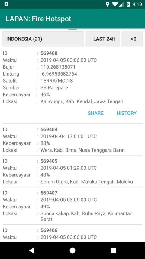 The hotspot monitoring application by the National Aeronautics and Space Agency (LAPAN) is a concrete manifestation of LAPAN's commitment in providing early warning and information on forest / land fires originating from remote sensing satellite data. Through this application, users can find out the coordinates of hotspots in the territory of Indonesia in near-realtime. The remote sensing satellites used for hotpsot monitoring came from satellites Aqua, Terra, SNPP, and NOAA20 which were received directly by the LAPAN Earth Station.