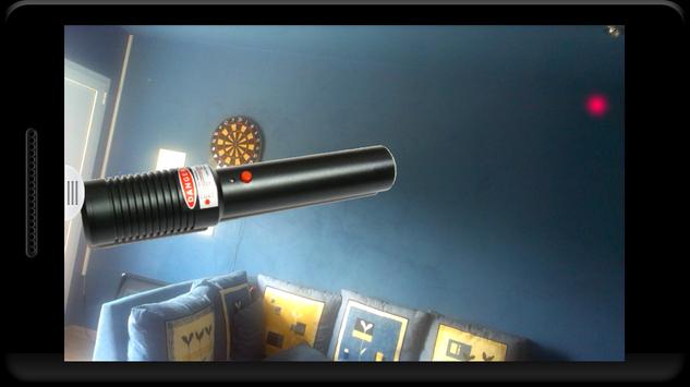 It emits a red dot on the screen simulating a real laser.