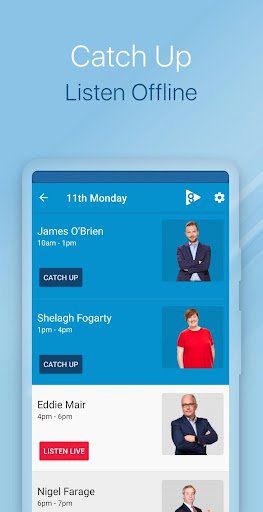 - Catch up / listen again to all LBC shows from the last week whenever you like.