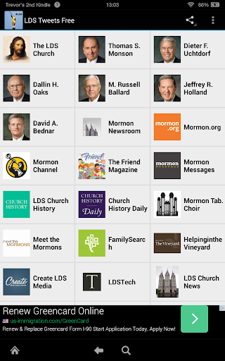 Currently includes: The Church of Jesus Christ of Latter-day Saints, Russell M. Nelson, Dallin H. Oaks, Henry B. Eyring, M. Russell Ballard, Jeffrey R. Holland, Dieter F. Uchtdorf, David A. Bednar, Quentin L. Cook, D. Todd Christofferson, Neil L. Andersen, Ronald A. Rasband, Gary E. Stevenson, Dale G. Renlund, Gerrit W. Gong, Ulisses Soares, The Tabernacle Choir, FamilySearch, Church News, LDSGeneralConference, Mormon Times, Book of Mormon Central, FairMormon, Interpreter, Maxwell Institute, BYU Speeches, LDS Living, Latter-day Saint Quotes, LDS365, #GeneralConference