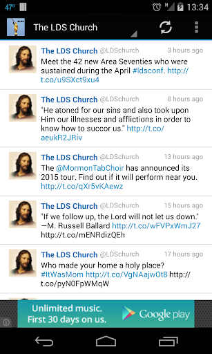 This is the free version, so you can try before you buy. The ad-free version you can buy is called "LDS Tweets."