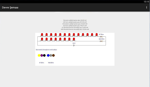 as serial, how many units will be parallel arm, what will be the resistor values of the parallel arms.This software calculates for you and draw the circuit.Circuit resistors is displayed on the standard resistor value.Calculate the power consumed by the circuit and the current drawn by the circuit.