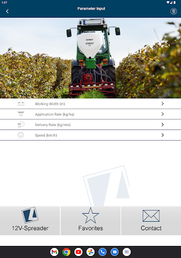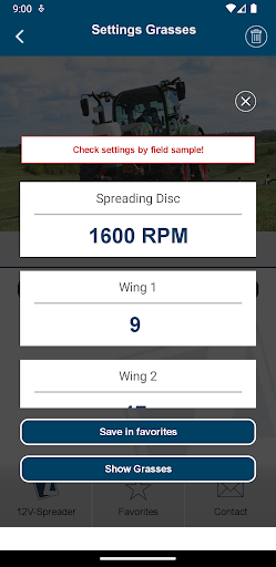 You simply select the respective spreader in the app and can then decide between the value determination via spreading material calculator or spreading material selection. Then enter the desired parameters, such as application rate, working width and speed, and you will immediately be shown the necessary setting values for your LEHNER spreader. Of course, you can also add this overview directly to your favorites and call it up again in the future without having to enter/calculate it again.