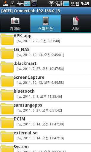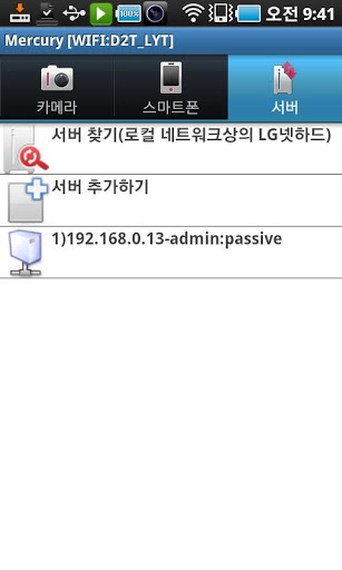 File manager, FTP client LG NAS, LG, NAS, FTP, File, backup Back up, sync File ManagerMercury is designed to share files in your mobile device with networkedLG NAS. You can upload and download the files by FTP protocol. Enjoy smart life with the File Manager by connecting NAS anytime, anywhereWith WiFi connection, you can detect presence of a particular NAS with Auto Discovery function and connect to it. 1. LG NAS ServerCreating, deleting folderBrowse and download files to mobile device.2. Device LocalBrowsing, Editing, Running file and Uploading to NASSupported File Formats Video mp4, m4v, wmv, aviAudio aac, mp3, 3gpImage jpg, pngOffice pdf, ppt, doc, xlsApplication apk3. CameraAt camera tab, also, taking picture and recording video file is allowed. If you connected on server and INSTANTUPLOAD is active, new photos you take are automatically send to both your deviceand NAS automatically. To enjoy multimedia streaming service with LG NAS, please download MyData from Android Market. In order to take advantage of Mercury file manager, the following NAS options need to be checked it out upon NAS web page: the ftp server have to be set as quot;enablequot; and FTP sharing option against a folder also have to be checked Connecting NAS with DNSIP address, you can updown load files from NAS to your device and vice versa. Maximum number of files allowable for updownload is twohundred at a time, and total transfer file size limit is up to 2GB as well. Under different circumstances updownload large files might not be stable Supported File Formats: extension, av codec, resolution, bitrate and etc however, might be different depending on which an android device you uses. the Mercury, File manager is optimized for LG NAS, however, it can be used FTP client working with general FTP server.