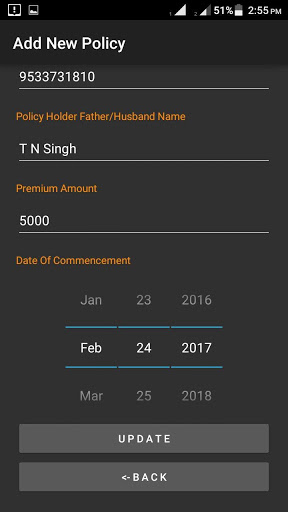 LIC Organizer allows an Insurance Agent to Add and View a policy in very effective way. The search functionality allows user to search a policy by Policy No, Policy Holder Name and By Mobile No in a fast paced manner. It lists all the polices of current month for which the Premium has to be collected. And last but not the least it removes the necessity of using Pen and Paper and allows user to connect to the digital world. Along with managing policies it also allows the agent to check policy/product detail on the fly. The application also allows to calculate premium, however it requires internet connectivity.