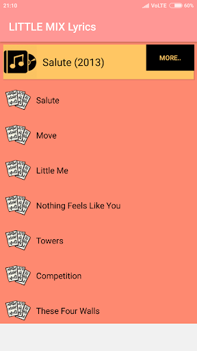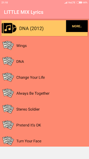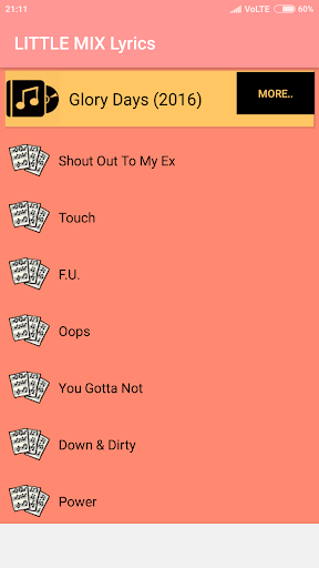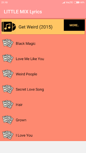 This Application contains the lyrics of Albums of the Little Mix.
