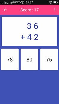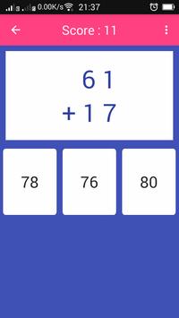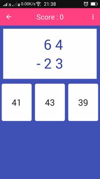 * Unlimited Addition questions. * Unlimited Subtraction questions. * Unlimited Multiplication questions. * Easy Interface For Kids to use.