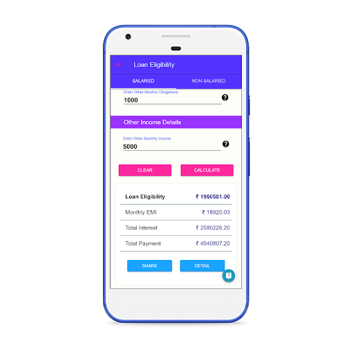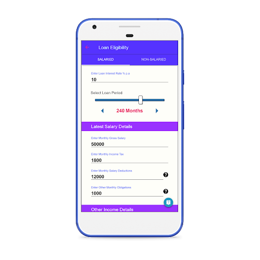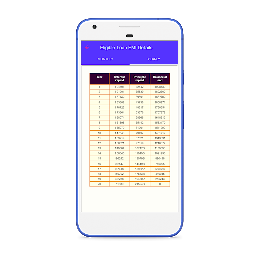 LOAN CALCULATOR app is a simple and accurate tool for calculation of Loan Eligibility and EMI for all types of Home Loan, Car Loan, Personal Loan and Mortgage Loans. The app is developed as per the standard process adopted by the banking industry in India for assessment of Loan Eligibility as per the repayment capacity of an individual. It is helpful for both Bankers as well as Customers for on the spot assessment of Loan Eligibility of all the retail loans.