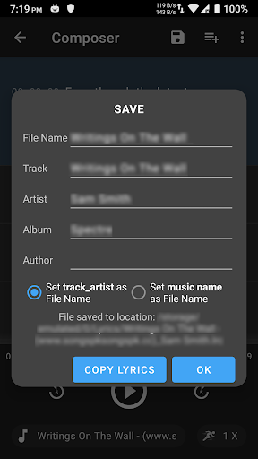 ✔ Save incomplete lyrics to edit 📝 it later on.