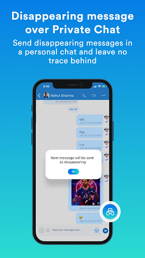 ● Disappearing messages - Send disappearing messages in a personal chat and leave no trace behind. Once that message is read the intended user will not be able to see that message again when they return to the chat screen.