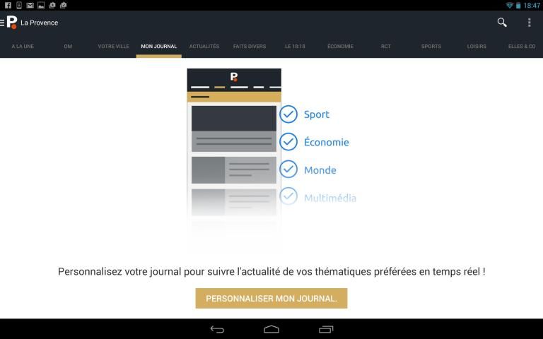 Découvrez la nouvelle application La Provence, avec son design plus clair, épuré et encore plus accessible. Suivez l'information de votre région et lisez votre journal depuis l'app La Provence, avec l'accès aux éditions de Marseille, Aix - Pays d'Aix, Vaucluse, Alpes, Arles, Aubagne - La Ciotat, Martigues - Istres, Salon et Vitrolles - Marignane. Profitez de l'actualité sportive régionale et des dernières nouveautés sur l'OM.