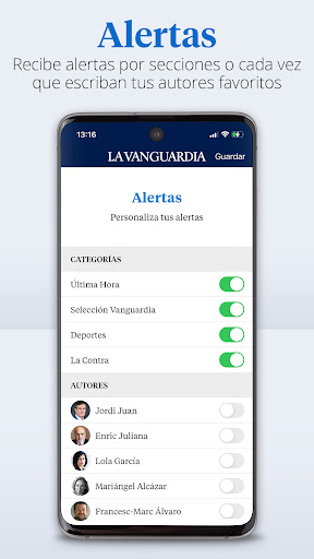 - Receive alerts with the last hour to be the first to be informed of the news. In addition to being able to receive alerts when your favorite editor publishes a new article