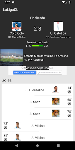 • Detalles de los partidos en vivo y una vez finalizados
