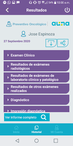 Aplicación que permite a pacientes y médicos de las Clínicas de Auna la visualización de resultados de laboratorio y chequeos preventivos oncológicos.