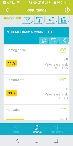 El usuario podrá llevar un histórico de sus resultados, descargarlos y/o compartirlos con su médico tratante además visualizar la tendencia de sus resultados en el tiempo.