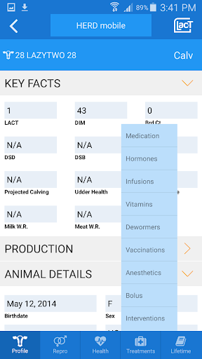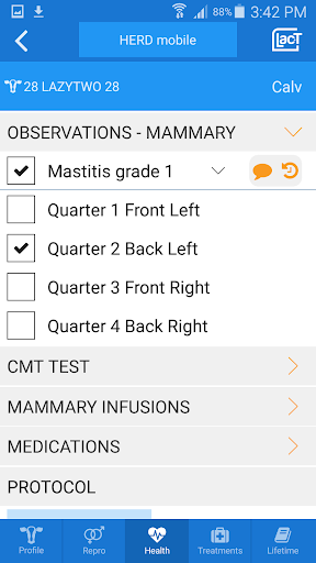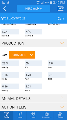 The herd management application, Lac-T mobile, allows for simple data entry and easy access to herd information.