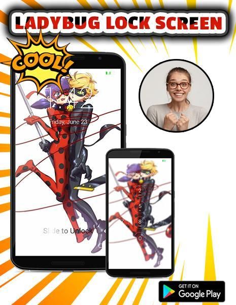 With Ladybug lock screen, protect your privacy from parents, ex girlfriend or boyfriend easily. Be your own locker master and ensure your phone's or tablet's security. Now all you have to do is to create a nice lock screen passcode and choose one of the numerous ladybug themes for mobile and tablet that are offered and feel yourself inside a passionate ladybug and cat noir kissing scene. Decorate and protect your smart device, set a keypad lock screen and be sure that your messages, photos and other content will be safe. Attract attention anywhere you go with this unique photo lock app for your favourite anime wallpapers hd to unlock screen with beautiful design, Surprise your friends with this perfect lock screen for ladybug.