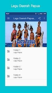 Sebuah aplikasi terbaru yang bernama Lagu Daerah Papua merupakan sebuah aplikasi yang di dalamnya berisi kumpulan lagu-lagu Papua yang dapat anda dengarkan secara gratis tentunya setelah anda mendownload aplikasinya. Aplikasi Lagu Daerah Papua terdiri dari 5 folder playlist yang tiap playlistnya berisi 11 Lagu Papua, beberapa macam lagunya sebagai berikut: