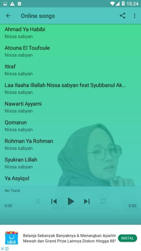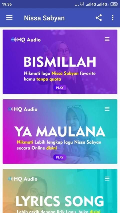 Nissa Sabyan Song Application | Offline & Online + Lyrics you can enjoy more complete with online features there are many songs in it.