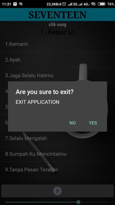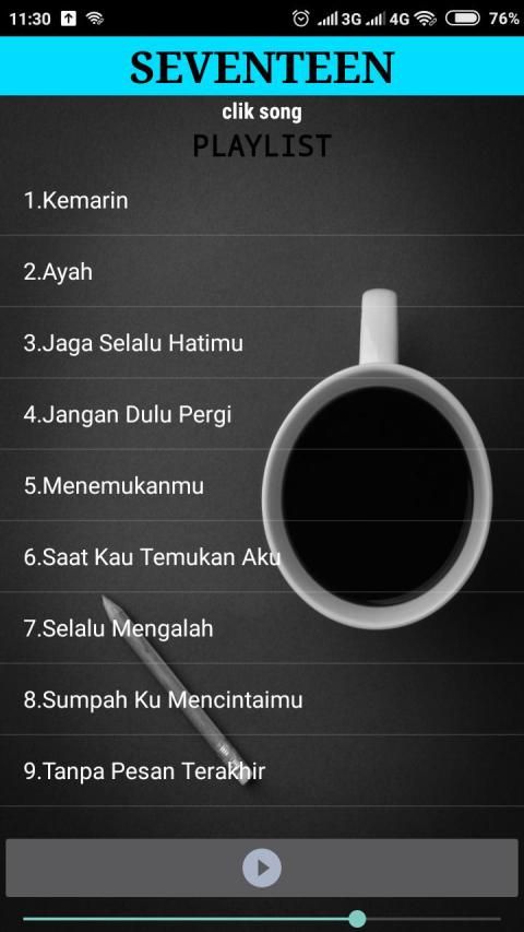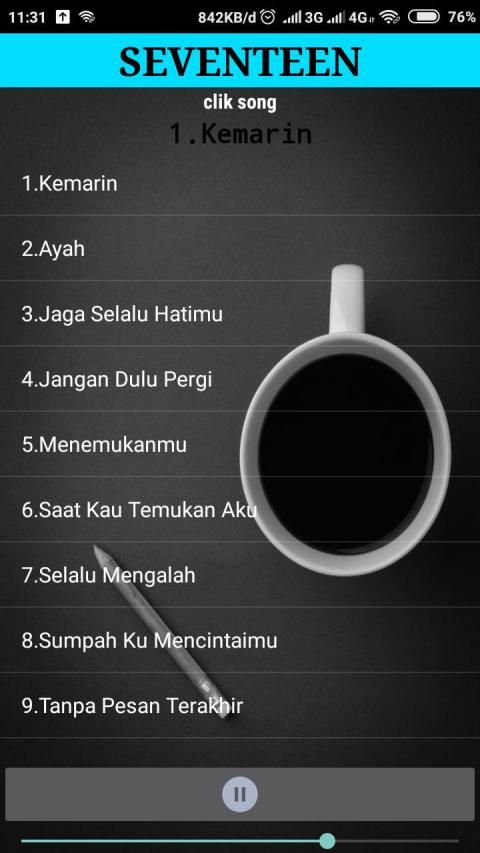 Aplikasi ini berisi kumpulan lagu dari Seventeen yang kami rangkum untuk anda. Anda bisa menikmatinya dimana saja dan kapan saja untuk mengenang grup band Seventeen.