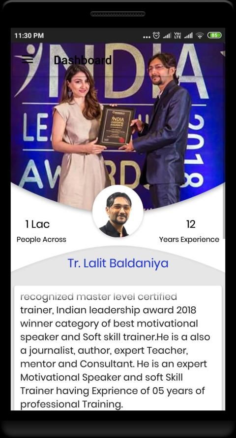 Lalit Baldaniya is a american TESOL recognized master level certified trainer, Indian leadership award 2018 winner category of best motivational speaker and Soft skill trainer.He is a also a journalist, author, expert Teacher, mentor and Consultant. He is an expert Motivational Speaker and soft Skill Trainer having Exprience of 05 years of professional Training.