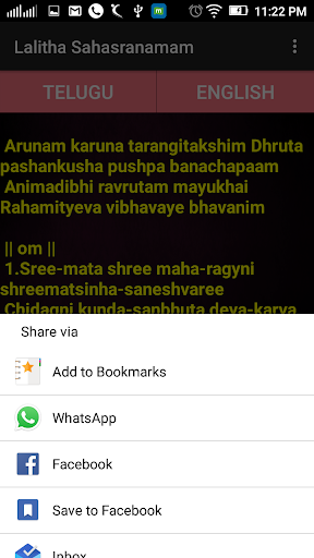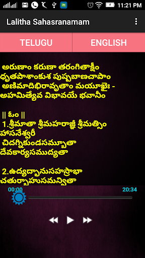 is a text from Brahmanda Purana. It is a sacred text to the Hindu worshippers of the Goddess Lalita Devi, i.e. the Divine Mother or Goddess Durga, in the form, Shakti. Lalitha is the Goddess of bliss, an epithet for Shiva's wife Goddess Parvati. Etymologically, "Lalitha" means "She Who Plays". In the root form (vyutpatti), the word "Lalitha" means "spontaneous" from which the meaning "easy" is derived and implicitly extends to "play".