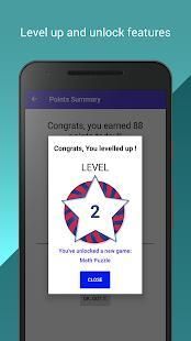 Earn more points to move up to next levels. When you move up a level, you unlock a new game / other features on the app.