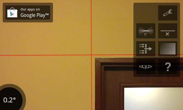 Laser Level lets you use your Android powered phone’s camera similarly to laser level tool. It's like augmented reality bubble level. It also shows angle in degrees, so not only can you see that something is not leveled, you see by how much.
