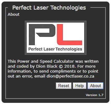 The values we use to calculate Power and Speed settings were measured by Perfect Laser South Africa on our own machines. Readings were taken with material from Cape Town. Your material may differ.
