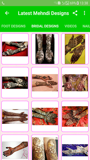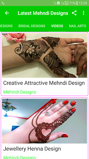 App Contains Attractive Mehndi Designs with Step by Step by Tutorial and Nail Arts Where Zooming Facility is available throughout the app and sharing facility