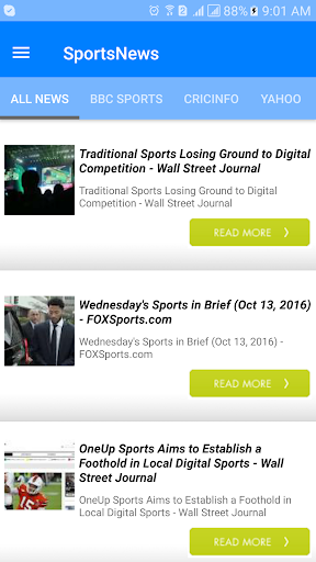 The Latest Sports News Headlines app is very user friendly and lets you switch between different news feeds with just a tap on the dash board. You can choose a specific feed, like latest football news headlines from BBC Sports, or switch to Cricinfo for the latest and exciting cricket news.