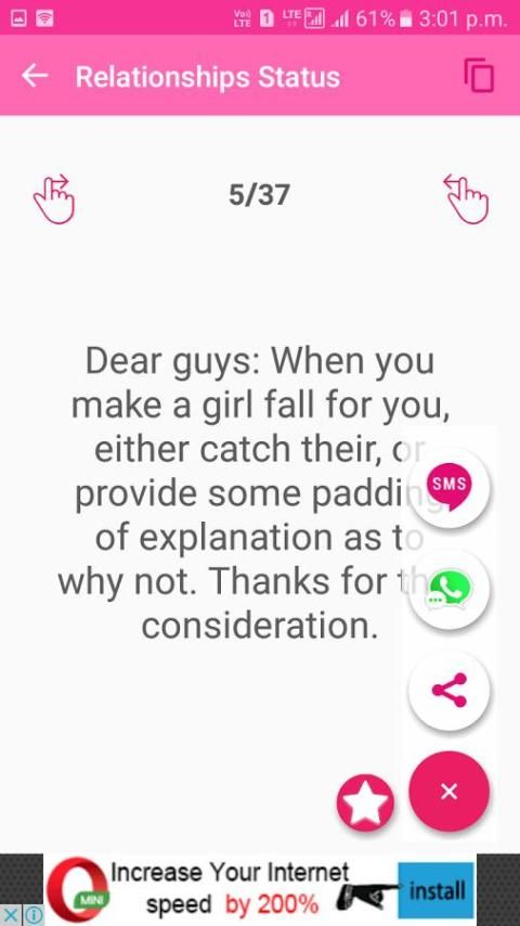 - Make your boyfriends smile by sharing a hilarious and funny status.