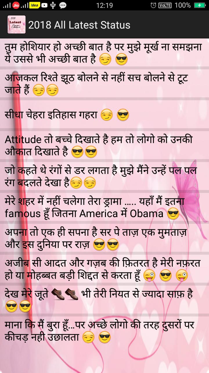 Latest Attitude Status 2020 app is a great status application having various categories.