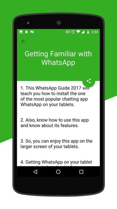 This application is a new book instant messengers guide created for peoples love to chat and free voice calling for everyone, guide you to use Whatsapp application so fun and share many tips about Whatsapp to you. You can download free Whatsapp from the store and download this tips & guides app to make you enjoy!