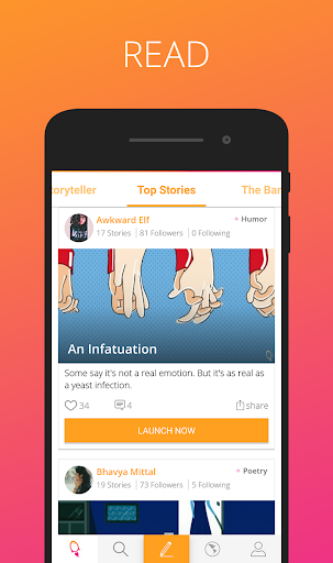 A writing and reading app where you can publish stories and poems. Launchora is a writing community for people who love to share and write poems, life stories, love stories, mystery, romance, screenwriting, fan fictions, confessions, letters, daily journals and more.
