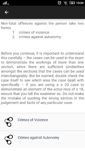 The app is good for revising before exams. With simple easy-to-locate chapters such as the ingredients of a crime, offences (such as murder, rape, and theft), and defences such as (insanity, necessity) one simple click gets you the concise information that you want. Criminal law is a fundamental in the first year of a law degree, be it from the University of London, Liverpool, Bristol, or Cardiff, or any other university that offers a law degree. It also forms the subject of most postgraduate programs.