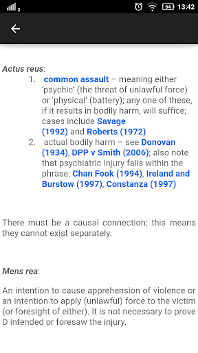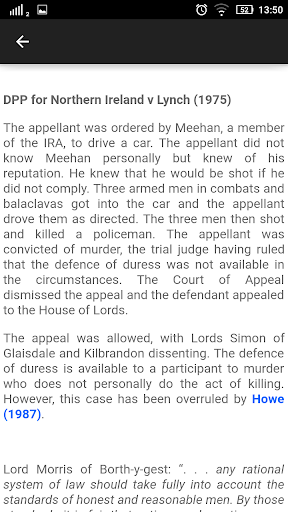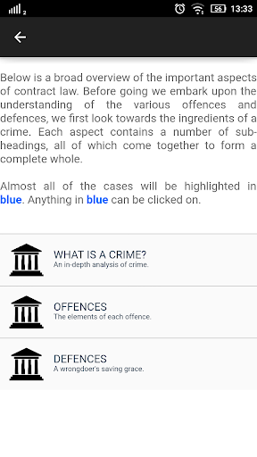 Criminal law is a subject that is based on a lot of case law. The Criminal Law cases contained in the app are indispensable: the collection of cases here are as complete as possible, bearing in mind the importance of each case. Our team took great liberty in choosing the cases, and it is with great regret that some of the cases made the cut while others did not. No doubt the process was done with great care, and only those which are of utmost importance are provided for your convenience.