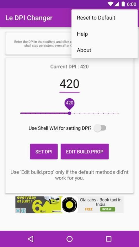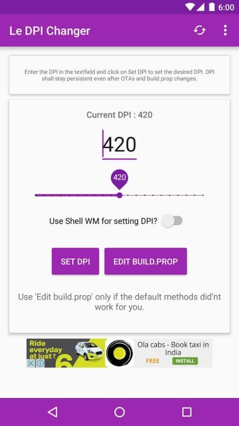 2. May not work with conjugation with another DPI changing app or inbuilt settings in custom ROMs(Eg.