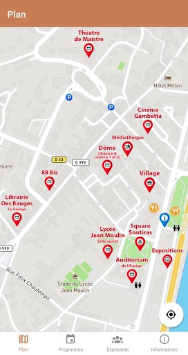 Áp dụng Bivouac lớn sẽ cho phép bạn tự định vị nhờ thẻ tương tác.Bạn có thể tìm thấy tất cả các chương trình của lễ hội và các nhà triển lãm của nó một cách đơn giản!