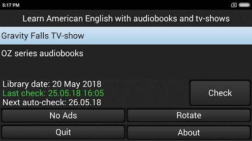 The list of available audiobooks and tv-shows is automatically updated if there is an Internet connection. The app allows you to download audiobooks. TV-shows you need to find yourself.