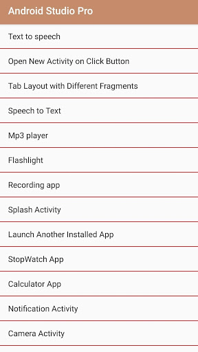This app is for those who want to develop won android app using android studio. this app provides the source code using this source code you can create your own android app.