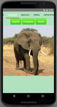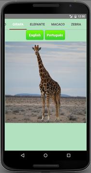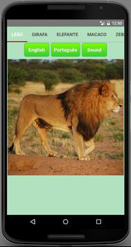 Application with images and sounds of wild animals, to teach children in English and Portuguese (Brazil), the names of wild animals.