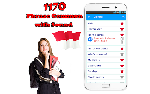 has 1170 common phrase in Bahasa Indonesian language free with sound and you can use all of them without network. Very useful for you learn and go to tralvel to the world. Learn Bahasa Indonesian grammar is very easy!