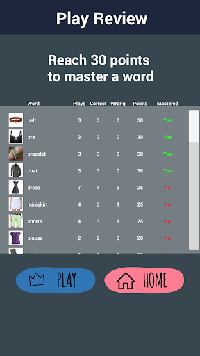 The app has native English sounds with the images. The app also has an addicting sound-picture match game where you can see your progress on the new vocabulary.