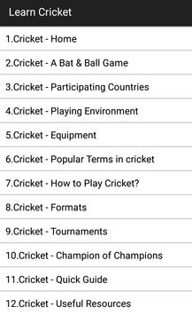 The Learn Cricket App is meant for anyone who wants to know and learn about cricket. It is prepared keeping in mind that the reader is unaware about the basics of the game. It is a basic guide to help a beginner understand the game of cricket.