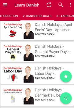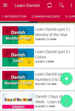 - Audio lessons to learn the correct pronunciation of the Danish language.